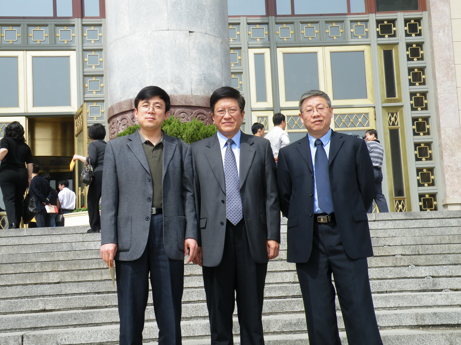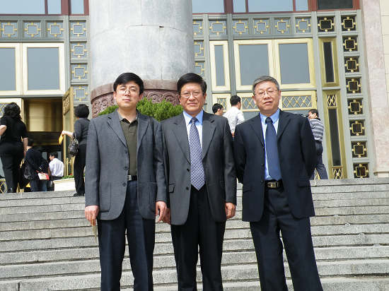 李大勇校长与河北校友会会长韩雨平(左)、副会长包志奋(右)合影