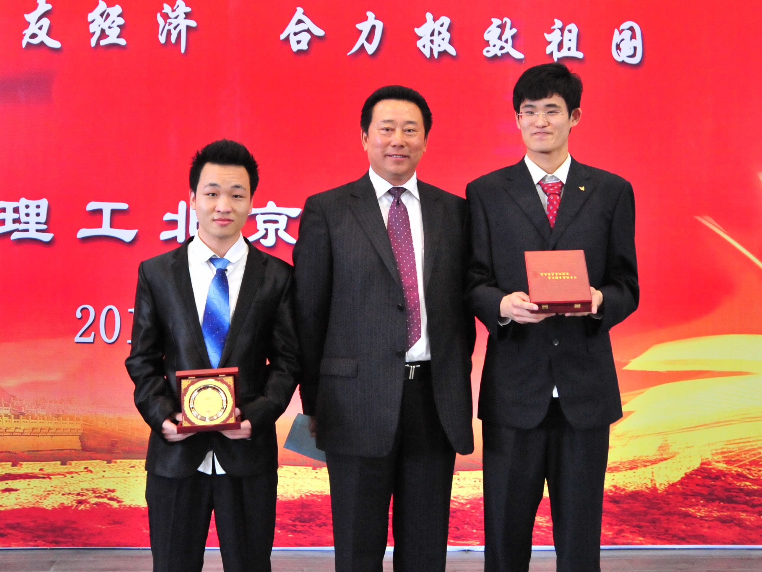 北京校友会副会长鲁众与骆茜同学为获奖学生颁奖