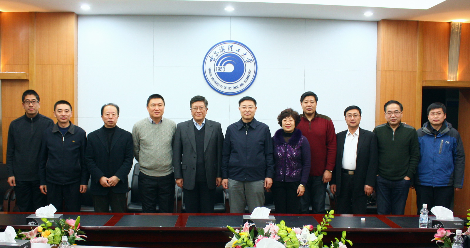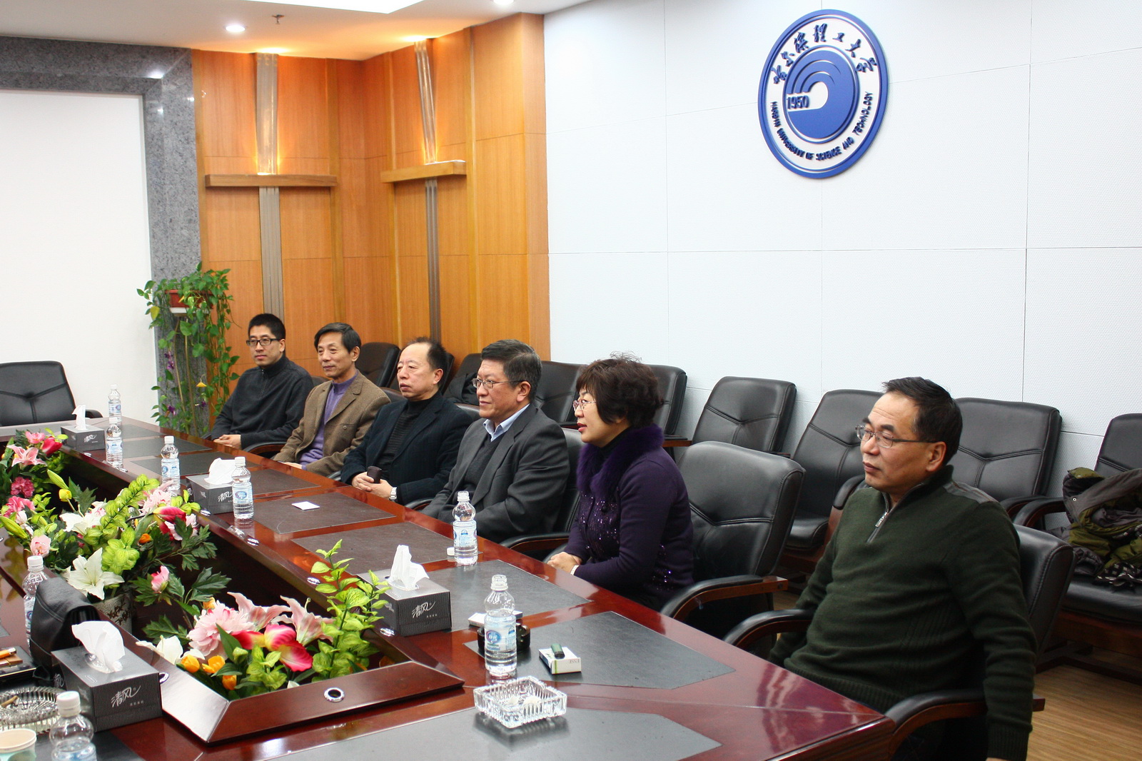 大连校友会名誉会长刘德春(左三)、会长张海杰(右三)一行回访母校