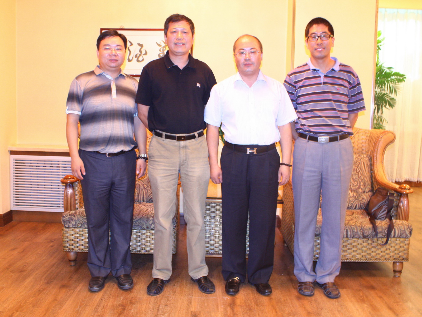 校工会主席、校友总会副会长杨春与青岛校友会副秘书长陈爱民(右二)一行合影