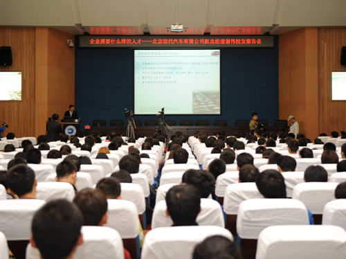 下午15点30分,谢伟校友在新教学主楼5楼报告厅以“企业需要什么样的人才”为题作精彩的报告,500余名在校学子认真聆听了谢伟校友的演讲。演讲中,他从汽车行业市场需要、中国隐现的人才短缺、北京现代的招聘需求、校园人才vs社会人才、人生不同时期的企业观、求职时应考虑的要素等八个方面作了详细的讲解。