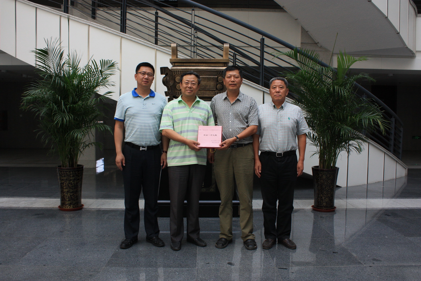 暑期期间,铸造74级20名校友在8月11日-15日从全国各地来到哈尔滨,齐聚母校,共同纪念入学40周年,在聚会结束离开母校之前,校友们向母校教育发展基金会捐赠了现金5万元以表心意,同时在西区校训石前的绿化广场认领了10棵杨树留念,寓意着“十年树木,百年树人”,他们祝愿母校能够为祖国的发展建设培养更多、更优秀的人才。这次捐赠是学校今年暑期校友秩年返校活动开始以来的首次捐赠,也是以班级为单位返校期间数额最大的捐赠,在此之后又先后有返校校友在此片园林认捐留念。