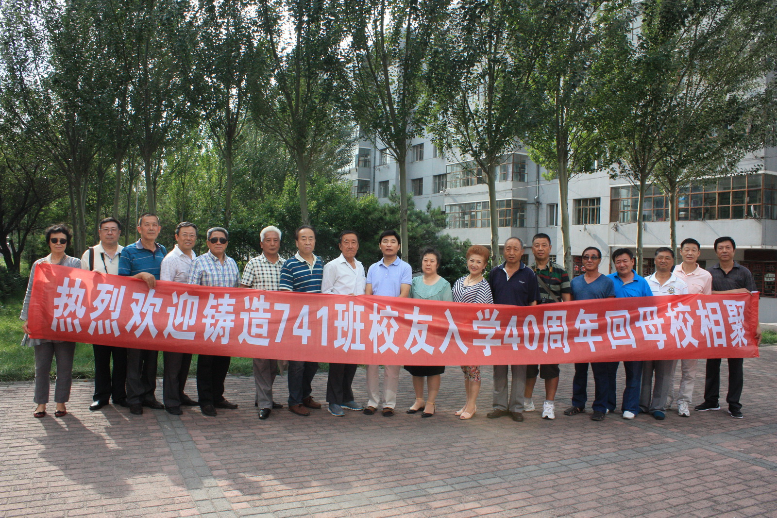 铸74-1班校友在认捐的杨树前合影