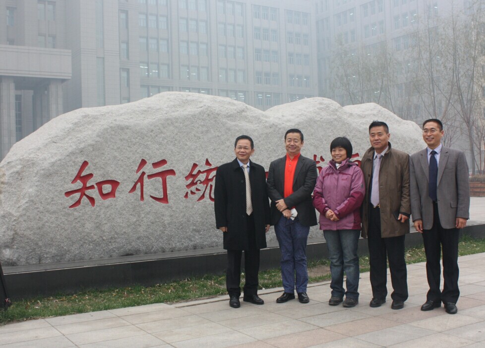 广东校友一行参观考察校园并在校训石前合影