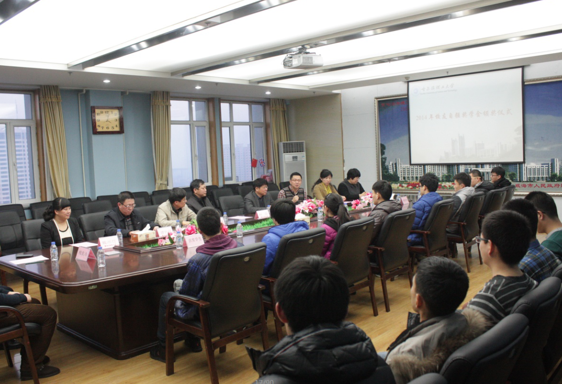 颁奖仪式上,杨主席代表学校和校友向获奖同学表示祝贺和鼓励,校友办向学校领导、老师和同学们通报了2014年校友自强奖学金的评选流程及结果,最后与会领导及老师向来自各学院的获奖学生分别颁发了获奖证书和奖金。