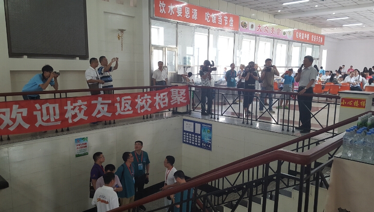 8月1日,学校再次迎来了暑期返校聚会的高峰,绝材81级、电气91级、电材91级、仪表91级、设备91级和财92-14班等6个专业(班级)共计380余名校友返校集中开展纪念活动,在“校友之家”团队的统筹接待和协调安排下,各专业(班级)校友在有序进行了各自活动的同时,中午时间集中来到学校食堂相聚,校友总会会长李大勇校长在校友总会副会长杨春副校长和学校原党委副书记陆鸣鹃的陪同下,专程来到东区看望校友,在食堂与校友们共进午餐。