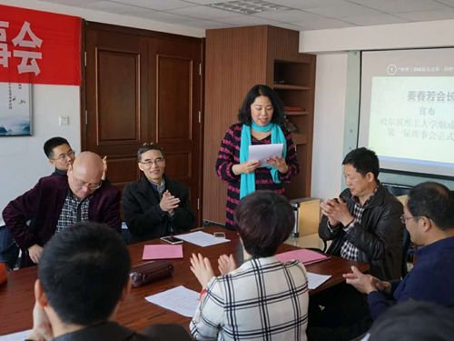 会议由王人东秘书长主持。首先由烟台校友会会长、山东成龙装饰有限公司董事长姜春芳致辞,并宣布“哈理工烟台校友会第一届理事会正式成立”。姜会长在致辞中指出,本次理事会是在全国各地校友会活动如火如荼开展的背景下召开的,各地在校友总会三届一次会议、三届二次会议精神指引下开展了丰富多彩而且有意义的校友活动,烟台校友会也大受鼓舞,并表示目前烟台校友会的规模已经达到了200多人。