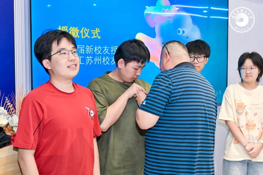 刘钢会长亲自为2025届新校友佩戴会徽,象征着理工精神的代代相传。