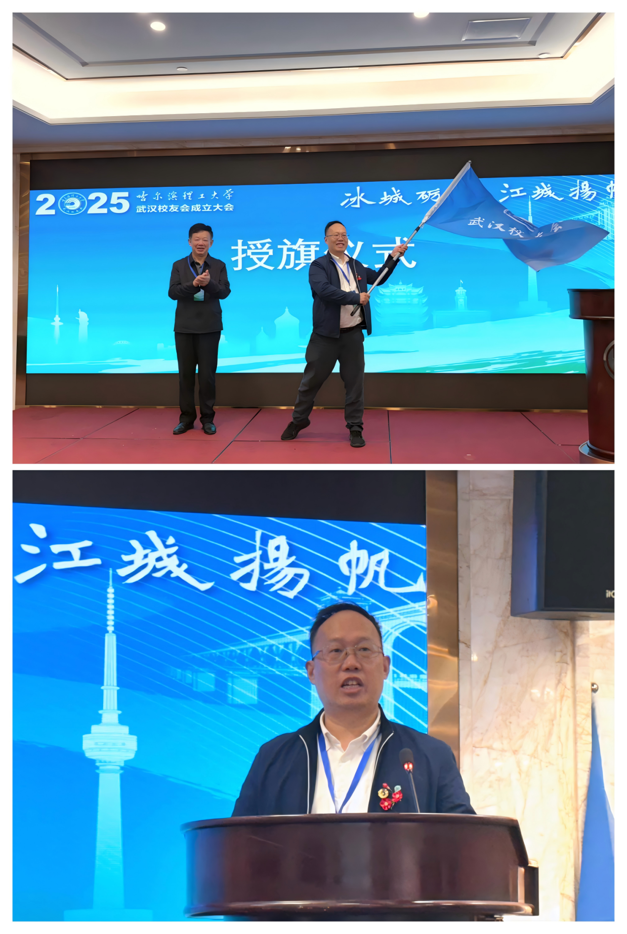 2025年10月18日,学校武汉校友会成立大会在武汉洪山宾馆隆重举行。学校党委副书记、工会主席郭加利,校友总会会长郭二军出席大会,党办 校办相关人员陪同参会。学校北京、天津、哈尔滨、沈阳、杭州等国内20余个地方校友会,以及加拿大校友会,哈工大、哈工程等兄弟高校的武汉校友会,湖北黑龙江商会、武汉市校友经济促进会均派代表到场或通过视频形式祝贺。