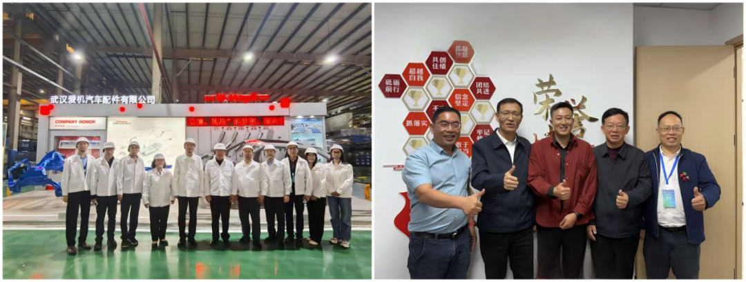 走访校友会期间,郭加利一行前往校友所在企业武汉爱机汽车配件有限公司、湖北语冠建设有限公司开展访企拓岗活动,深入了解企业发展情况,就构建校企科研合作关系、打造新质生产力实践地、促进毕业生高质量就业与校友企业家开展了座谈交流。